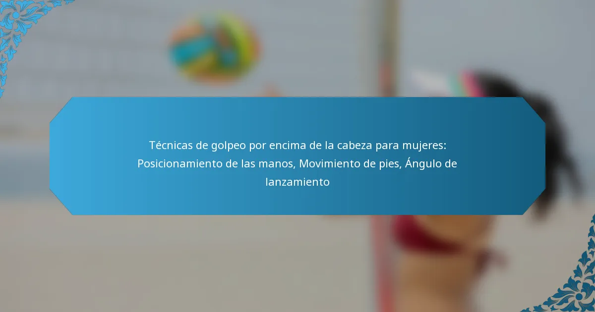 Las técnicas de colocación por encima de la cabeza para mujeres en deportes implican una posición específica de las manos, trabajo de pies y ángulo de liberación para entregar el balón de manera efectiva. Dominar estos componentes es crucial para mejorar el rendimiento y garantizar precisión en diversas actividades atléticas.